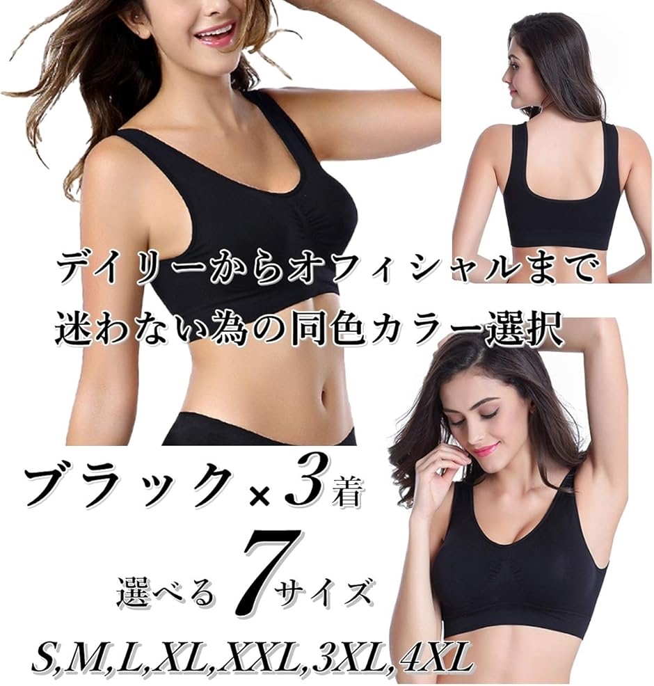 | 商品名 | カナエルン3枚組 スポーツブラ ナイトブラ ノンワイヤー ブラジャー 育乳 インナー マタニティブラ シームレス ブラック 4XL 95C 95D 100A 100B〜 |