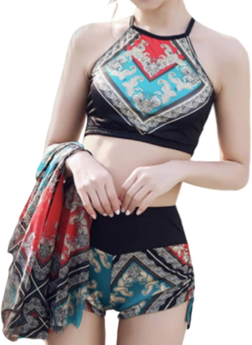 | 商品名 | タンキニ 3点 セット パレオ 付き レディース 水着 エスニック 柄 ホルターネック 体型 カバー 防水 ポーチ 付き XL レッドxブルー |