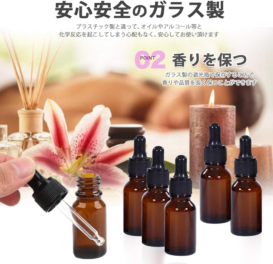 | 商品名 | 遮光瓶 スポイト付き アロマオイル 精油 詰め替え 保存用 ガラス製 12本セット |