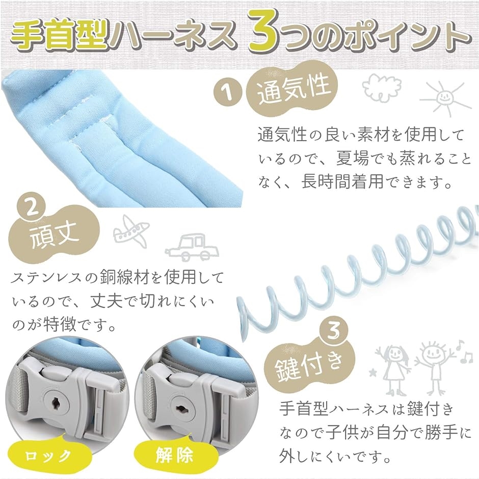 | 商品名 | リストバンドハーネス付き 迷子紐 迷子ひも ハーネス 迷子防止 迷子対策ロープ 子供 人気 水色 |