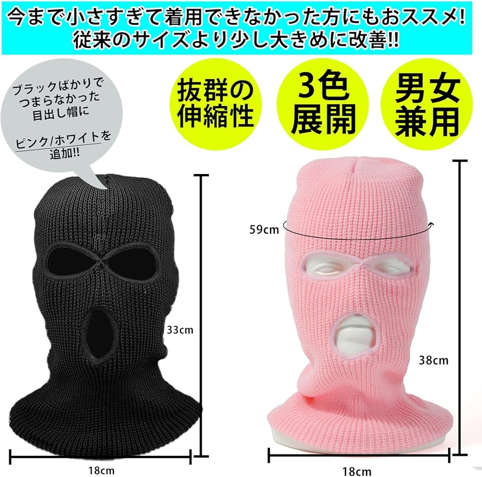 使い方次第で雰囲気が変わる2WAYデザインのため、コスパがいいです。 「従来の目出し帽より少し大きめのデザイン」サイズ:「首元18cmx頭囲59cmx縦38cm」 従来の目出し帽(サイズ:17cmx頭囲56cmx縦33cm)に比べて少し大きめのデザイン「せっかく購入したのに小さすぎて入らなかった…」という方にもおススメのサイズです。