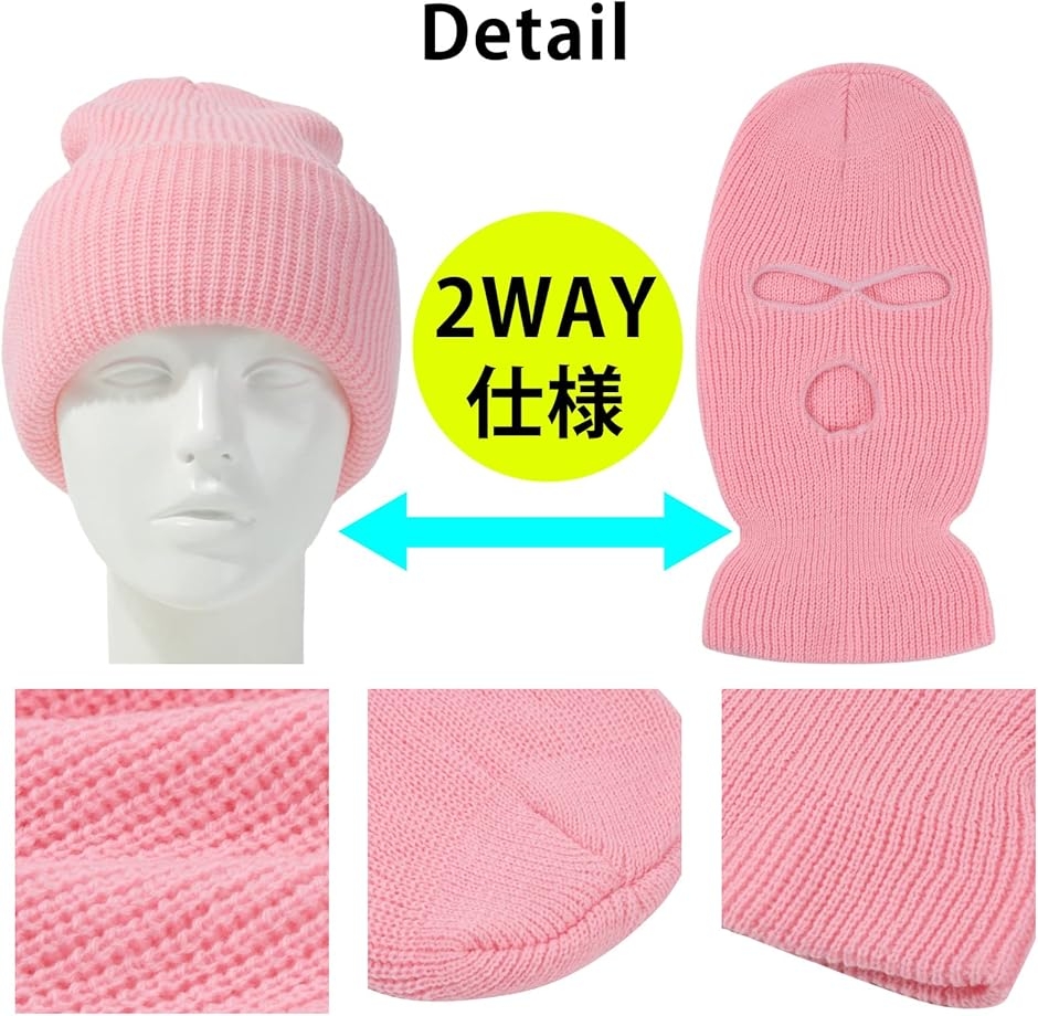 「2WAY仕様でコスパよし」目出し帽として、顔全体を覆う使い方の他に、首元をクルクル巻けば、ニットキャップとして使うこともできます。
