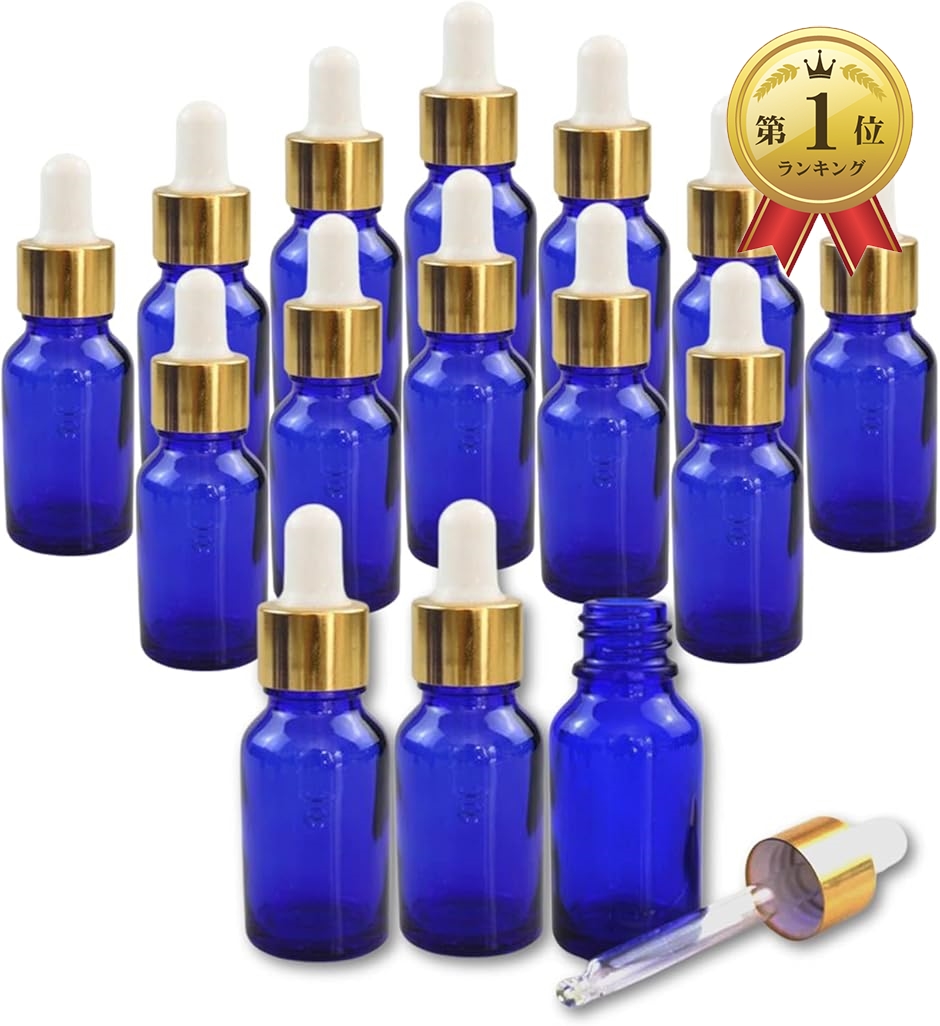 商品名 | 遮光瓶 30ml アロマ用遮光瓶 アロマ保存容器 ガラス製 スポイト付き遮光瓶 アロマ用ドロッパー付き遮光瓶 ブルー 15本 |