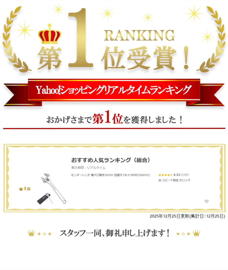 | 商品名 | モンキーレンチ 300mm 最大口開き35mm 目盛付 CR-V |