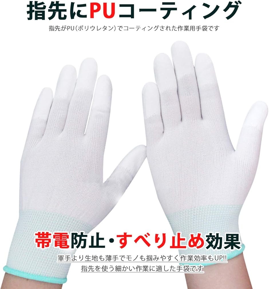 | 商品名 | 作業用 手袋 静電気 帯電 防止 精密機器 すべり止め 指先 コーティング 12組24枚セット |