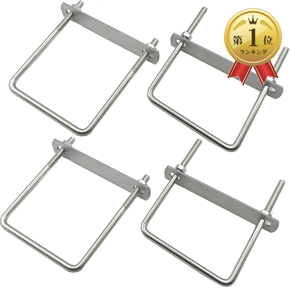 | 商品名 | 駐車カーポート用 固定金具 コ型ボルト Uボルト アルミ柱に穴あけ必要なし 締付固定 固定ベース ステンレス製 4個セット 角パイプ100mm用x4 |
