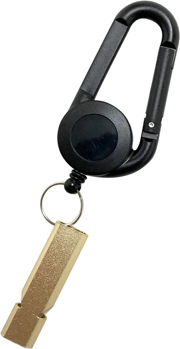 ・「リールキーホルダー&カラビナ付き」リールキーホルダーにカラビナ機能付きなので、装着したい所に取り付けられ、さらにリール式なのでホイッスルを使用しない時はコンパクトになります。