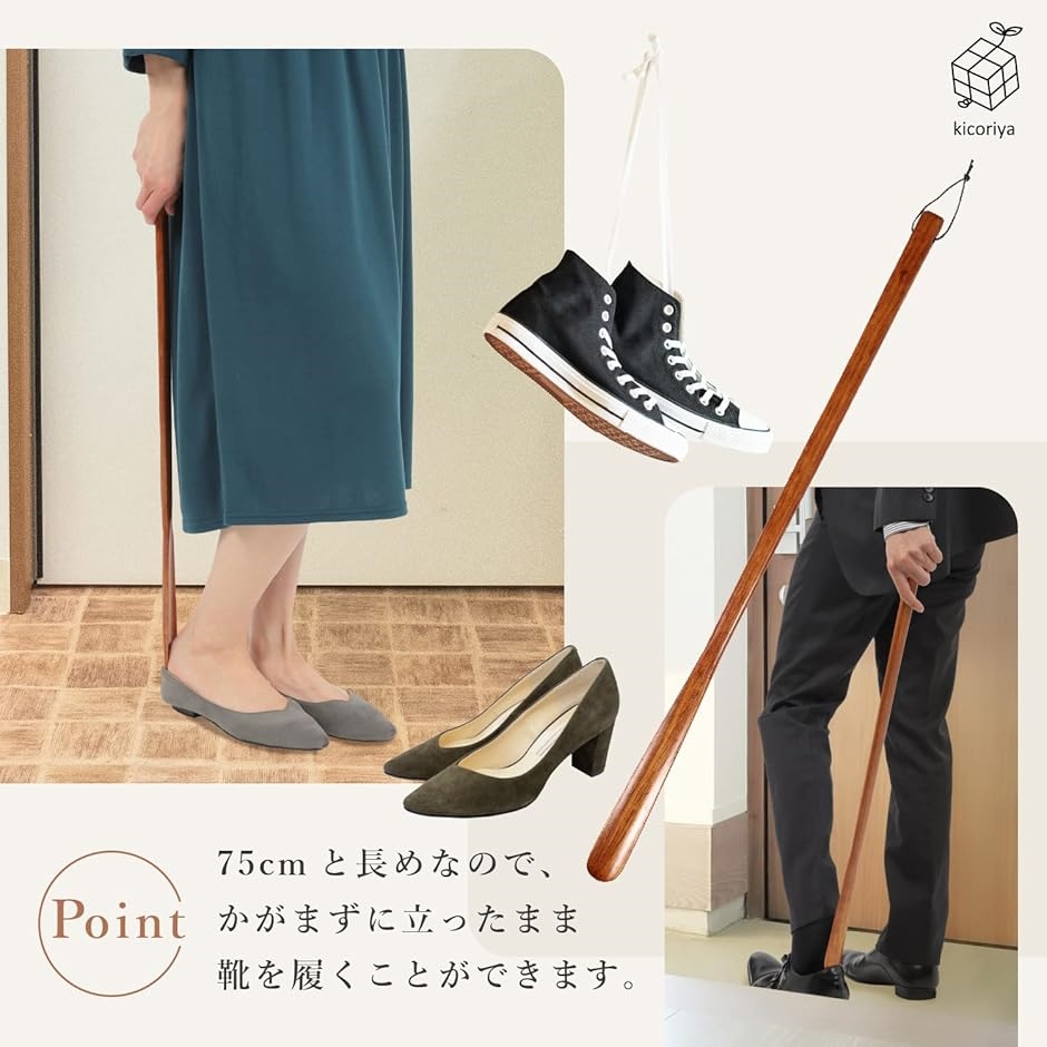 ・「長さ」75cm 長い靴べらなので、腰をかがめずに靴が履けます。