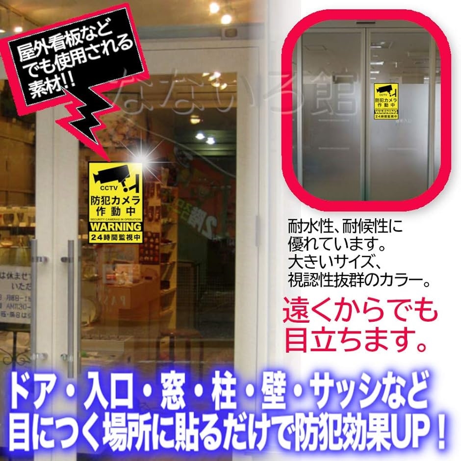 (屋内でもご使用いただけます) ステッカーなので簡単に設置でき、防犯対策ができます。