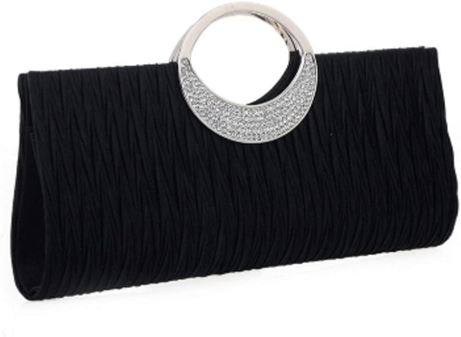 ・サテンプリーツとラインストーンのきらめき、上品なオシャレなクラッチバッグ、ご祝儀袋が楽々入る大きめサイズです。