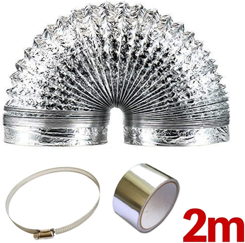 | 商品名 | 換気用ダクトホース 排気 送風機用 蛇腹ダクト 取付金具 ステンレス製ホースバンド アルミテープ 付 2メートル |