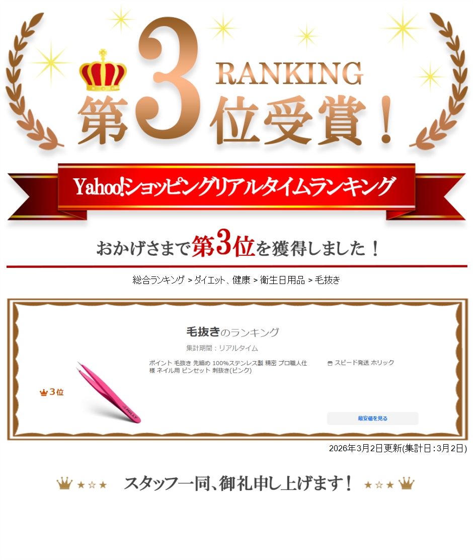 | 商品名 | ポイント 毛抜き 先細め 100%ステンレス製 精密 プロ職人仕様 ネイル用 ピンセット 刺抜き |