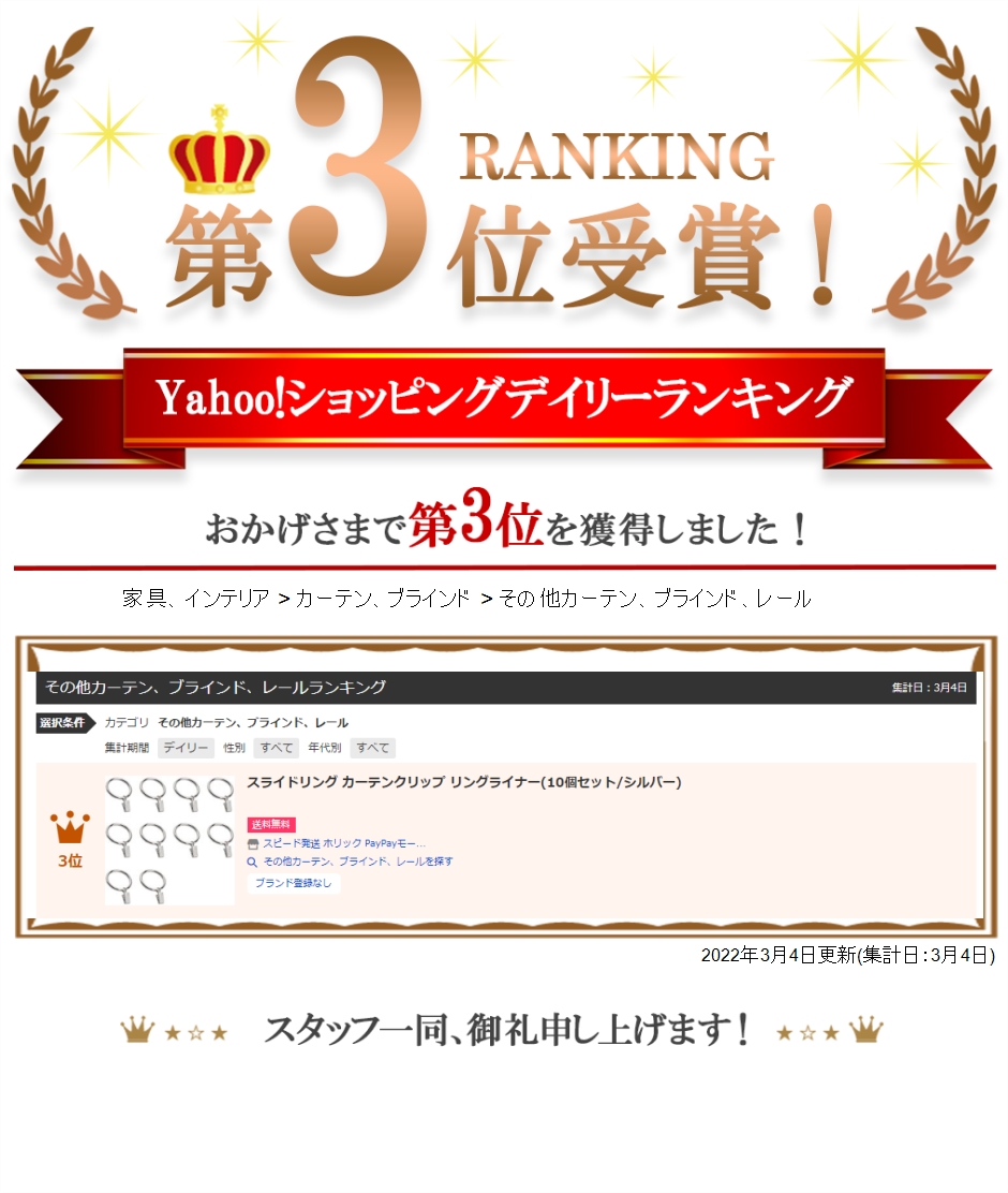| 商品名 | スライドリング カーテンクリップ カーテン リングライナー 10個セット/シルバー |