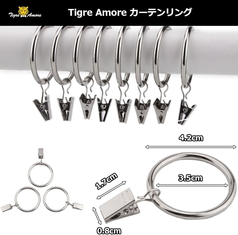 リング直径4.2cm リング内径:3.5cm クリップ:1.7cmx0.8cm 重量:10g 素材:スチール カラー:ブラック・ガンメタ・シルバー