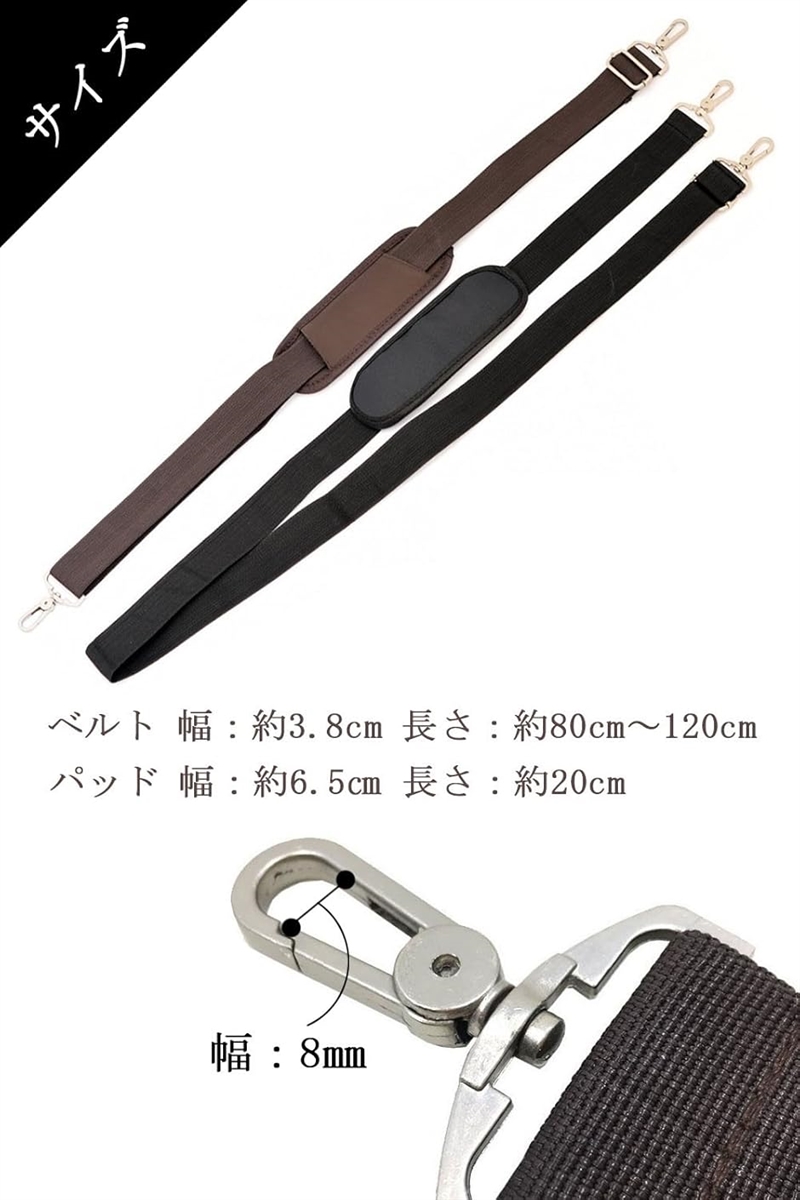 ・「サイズ」 (ベルト)幅:約3.8cm 長さ:約80cm〜120cm (パッド)幅:約6.5cm 長さ:約20cm