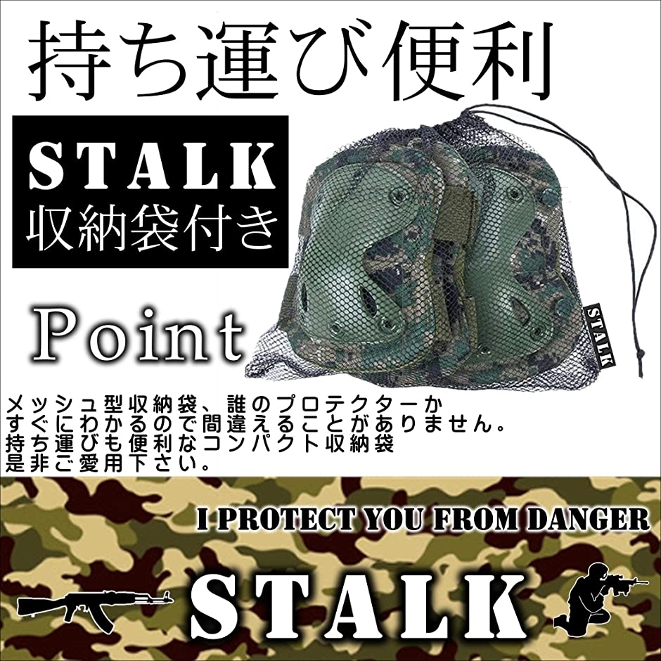 商品名 | STALK最新カラー13種類 XTAK型 プロテクター エルボーパット ニーパット 肘 膝 4点・コンパクト収納袋 自転車 登山 サバゲー スケボー 衝撃吸収 防御 CPカモフラージュ |