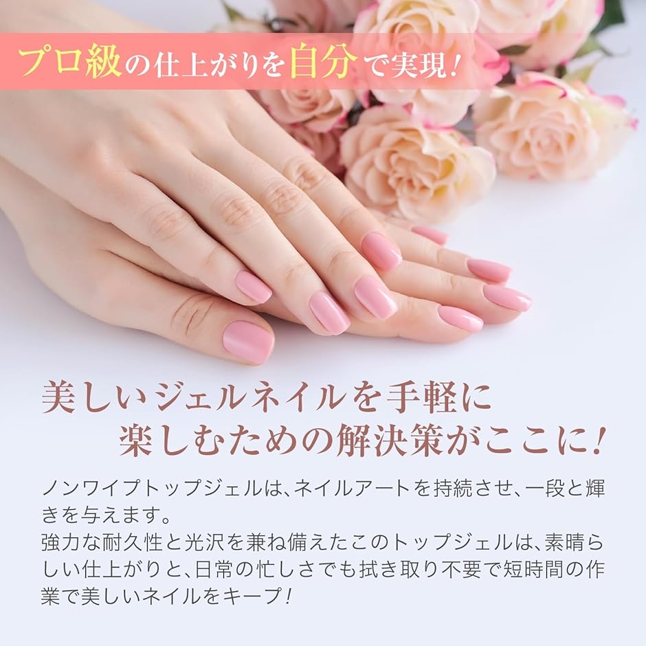 | 商品名 | ジェルネイル ノンワイプトップジェル 15g トップコート 拭き取り不要/美艶 ネイル ジェル ネイルジェル 光沢 ノンワイプ ジェルトップコート |