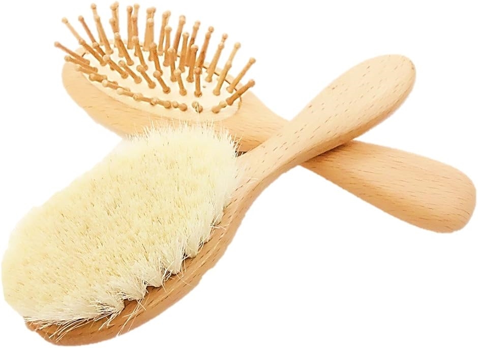 ヘアブラシにも使われる山羊毛は、新生児の細い毛髪や柔らかい頭皮を優しくケア出来ます。