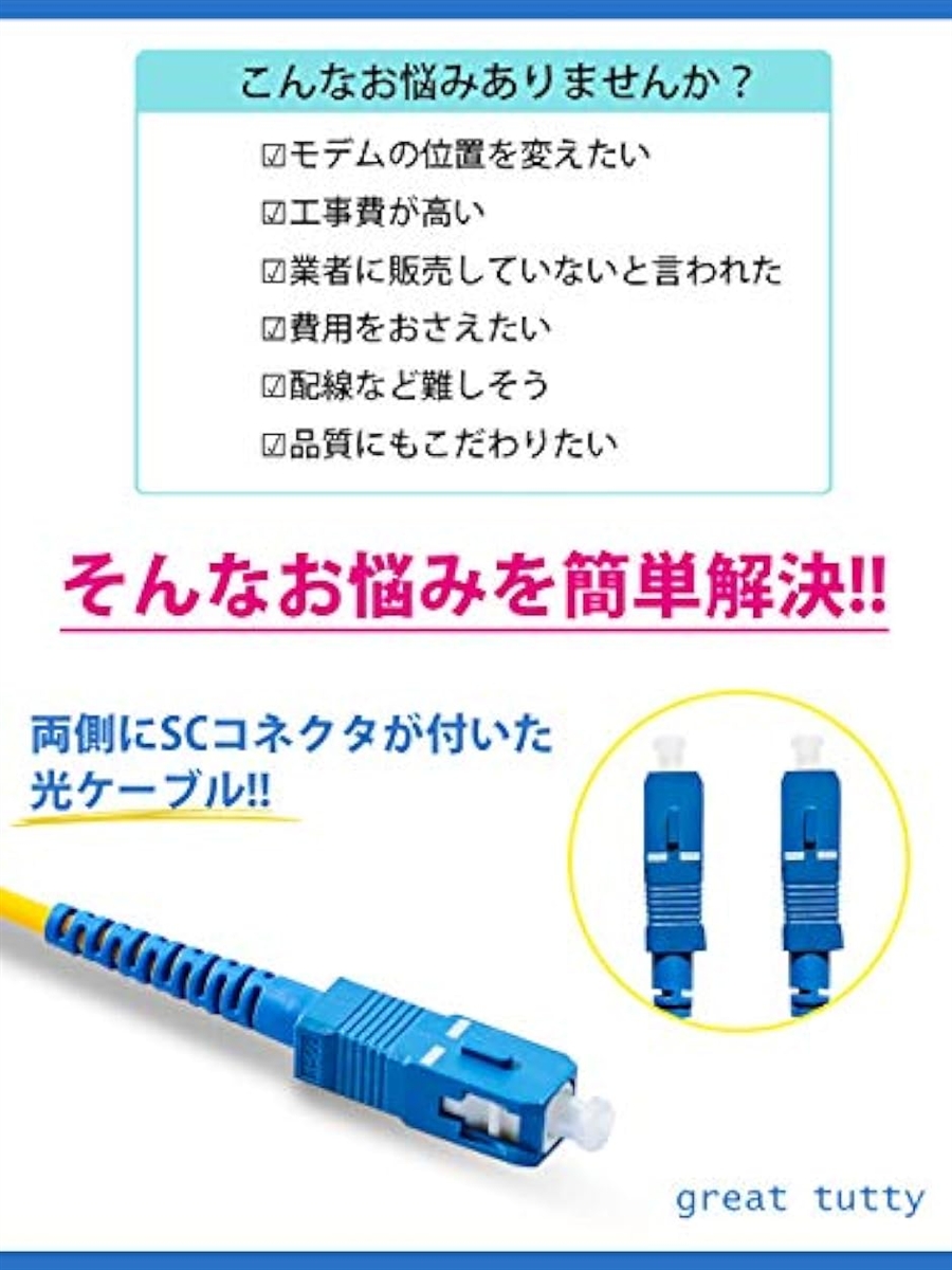 | 商品名 | 延長 光ファイバー ケーブル sc - sc 両端 SC コネクター付き 光ケーブル 50m 白 |