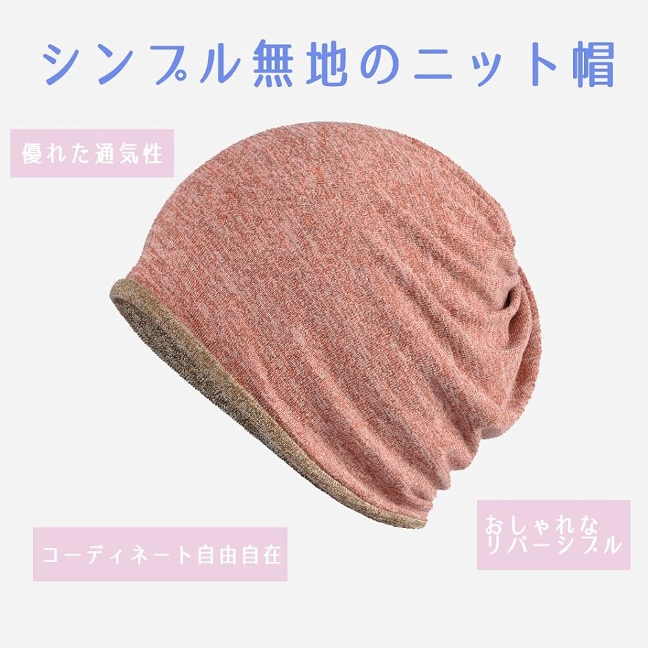 | 商品名 | リバーシブル ニット帽子 薄手 コットンワッチ レディース メンズ 3WAY コーラル/タン |