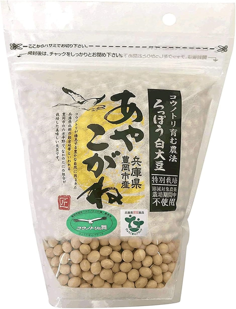 | 商品名 | 国産 大豆 乾燥 白大豆 あやこがね 1kg 節減対象農薬 栽培期間中不使用 コウノトリ育む農法 長期保存 兵庫県産 |