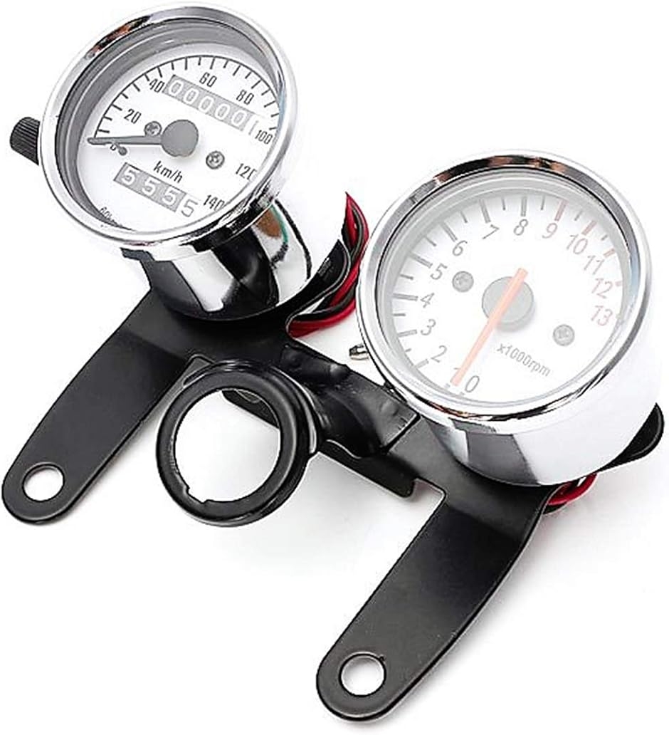 ・v「製品説明」 ・材質:ホワイトパネル ステンレス仕上げ ・数量:1個タコメータ、1個オドメータ、1個ブラケット(配線は最初からギボシ付) ・内部夜間赤色灯 ・電圧:12V ・タコメータ測定:0-13000RPMオドメータ ・測定:0-140km / h