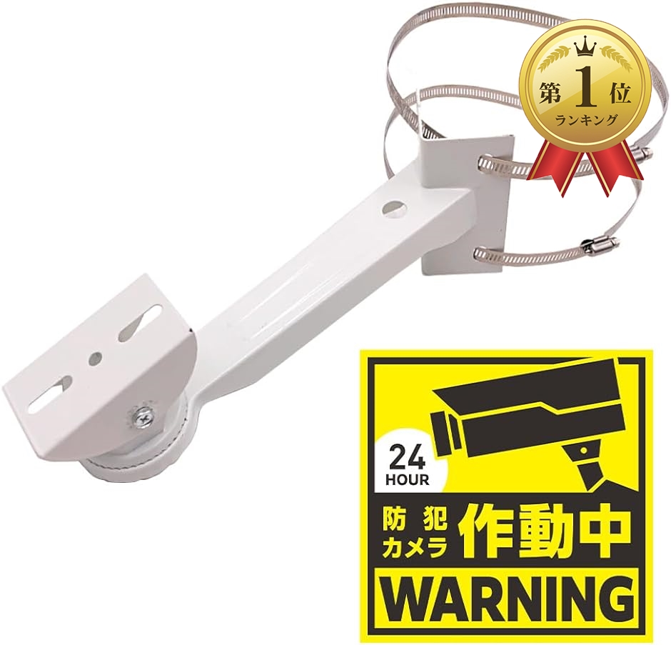 | 商品名 | 防犯カメラ 取付金具 防犯ステッカー付 ハウジング ブラケット ポール 円柱 角柱 屋外 取り付け 台 アーム ステンレスバンド付 29cm |