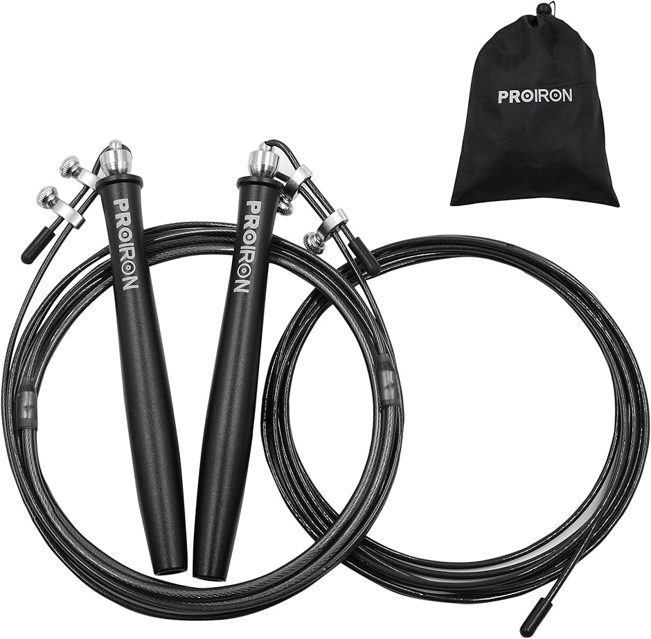PROIRON縄跳びスピードロープ金属製ねじれ防止長さ調整可能収納袋付