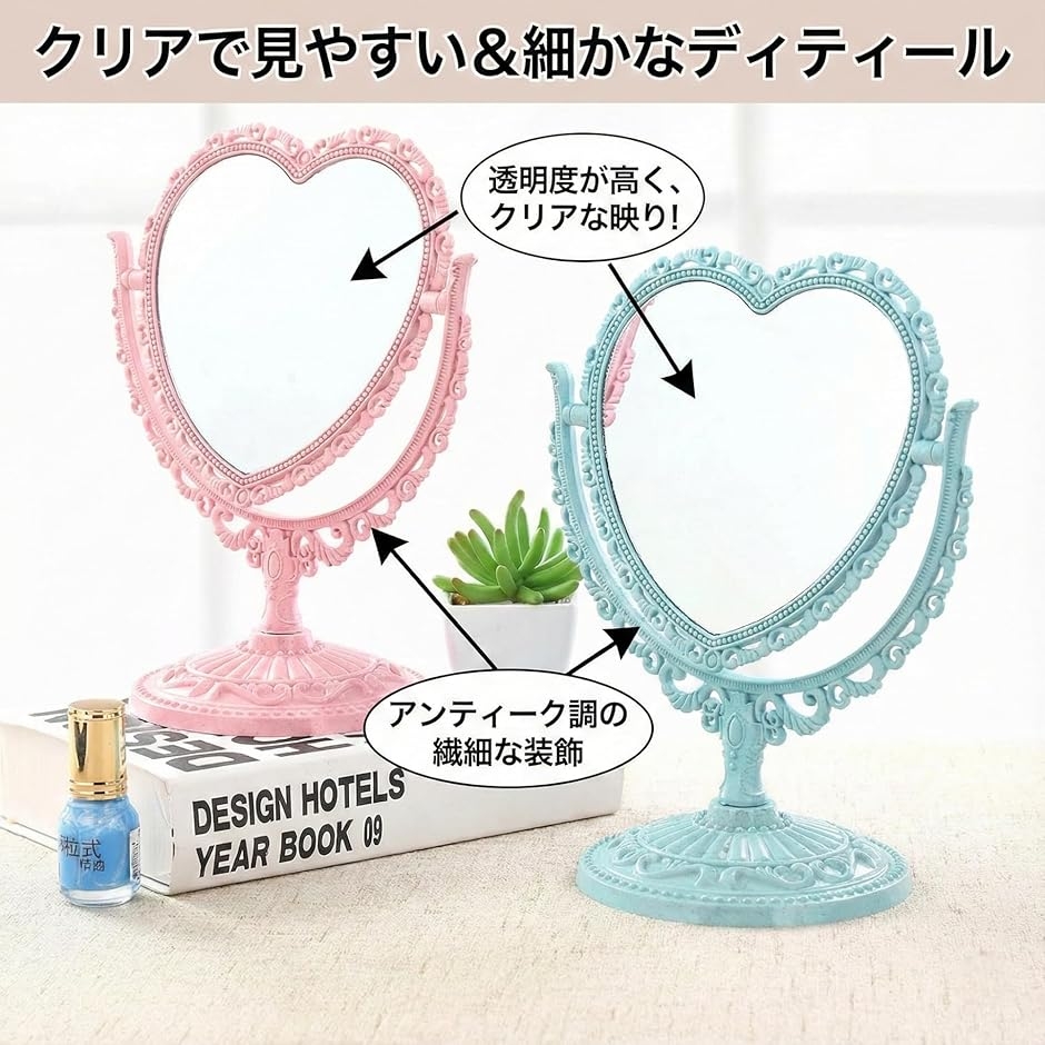 | 商品名 | 卓上 ミラー ハート 型 かわいい お洒落 メイク アップ コスメ 美容 化粧 鏡 スタンド 360度回転 |