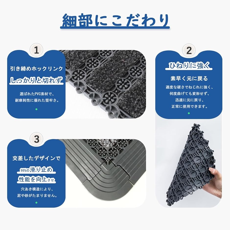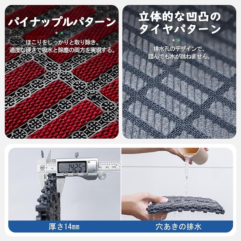 泥落とし機能: 玄関外マットとして、靴の汚れや泥をしっかりキャッチし、玄関を清潔に保ちます。