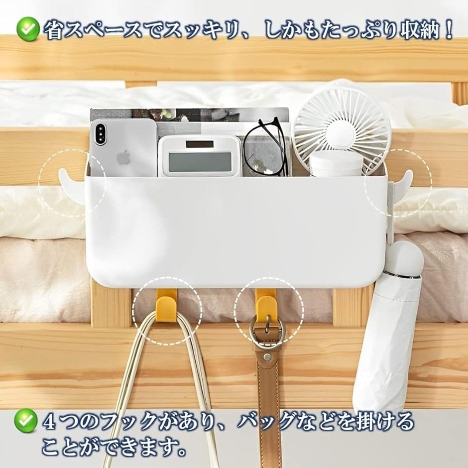 | 商品名 | ベッドサイド収納ボックス リモコン収納ボックス 小物入れ 収納ケース ベッドサイドポケット フック付き ベビーベッド ダブルベッド 小物収納 学生寮 部屋 オフィス ダブルフック 吊り下げ |