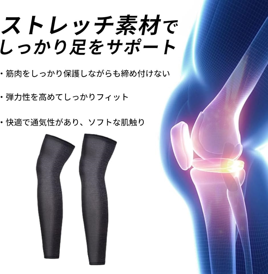 高弾性 UVカットレッグスリーブ 男女兼用 ストレッチ素材でしっかり足をサポート.滑り止めでズレにくくスポーツに最適。