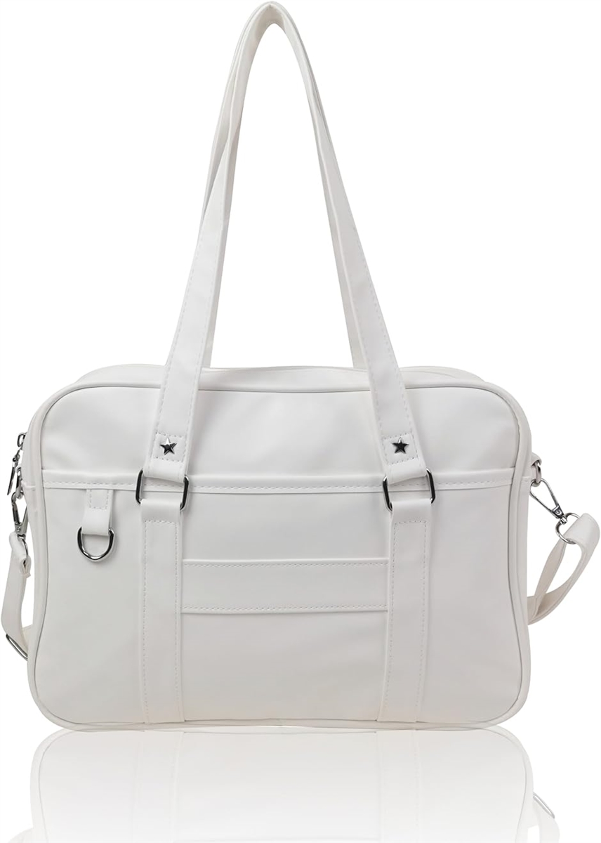 商品名 | スクバ スクールバッグ ミニ ミニサイズ コンパクト《通学に最適。おしゃれなPUレザーバッグ》 合皮 黒 茶 ショルダー ボストンバッグ 女子 高校生 学生 JK 制服 鞄 PU 通学 SCLB-C ホワイト |