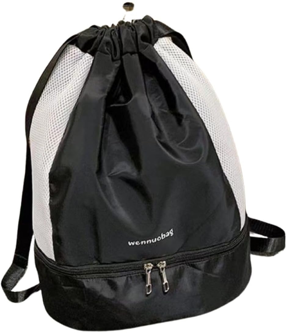 | 商品名 | プールバッグ 女の子 ナップサック 水泳 防水 軽量 アウトドア 乾湿分離 2ルーム シンプル ジム ブラック |