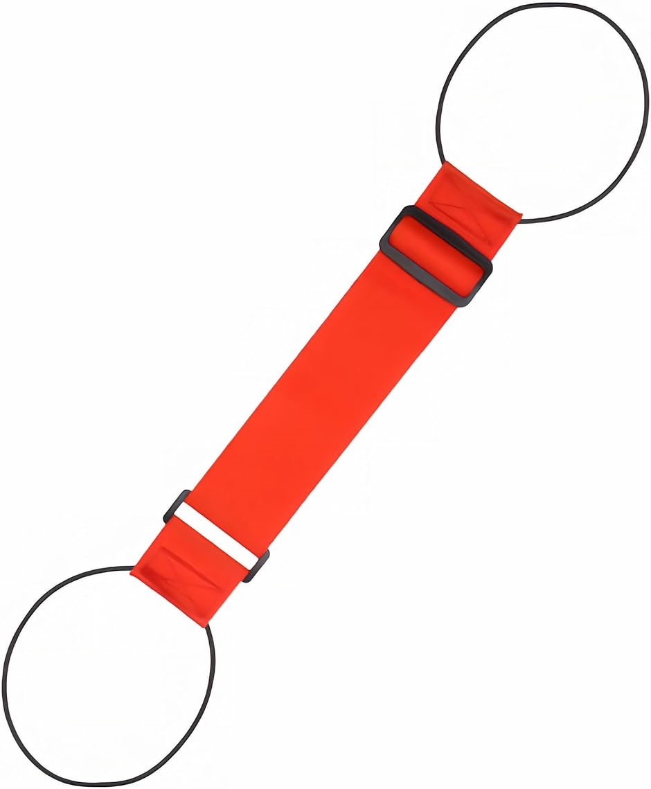 ベルト部長さ約26〜40cm(の間で調整可能)、幅約6cm、ゴム部:直径約12 cm、ゴム部込みの全長約50〜64cm。