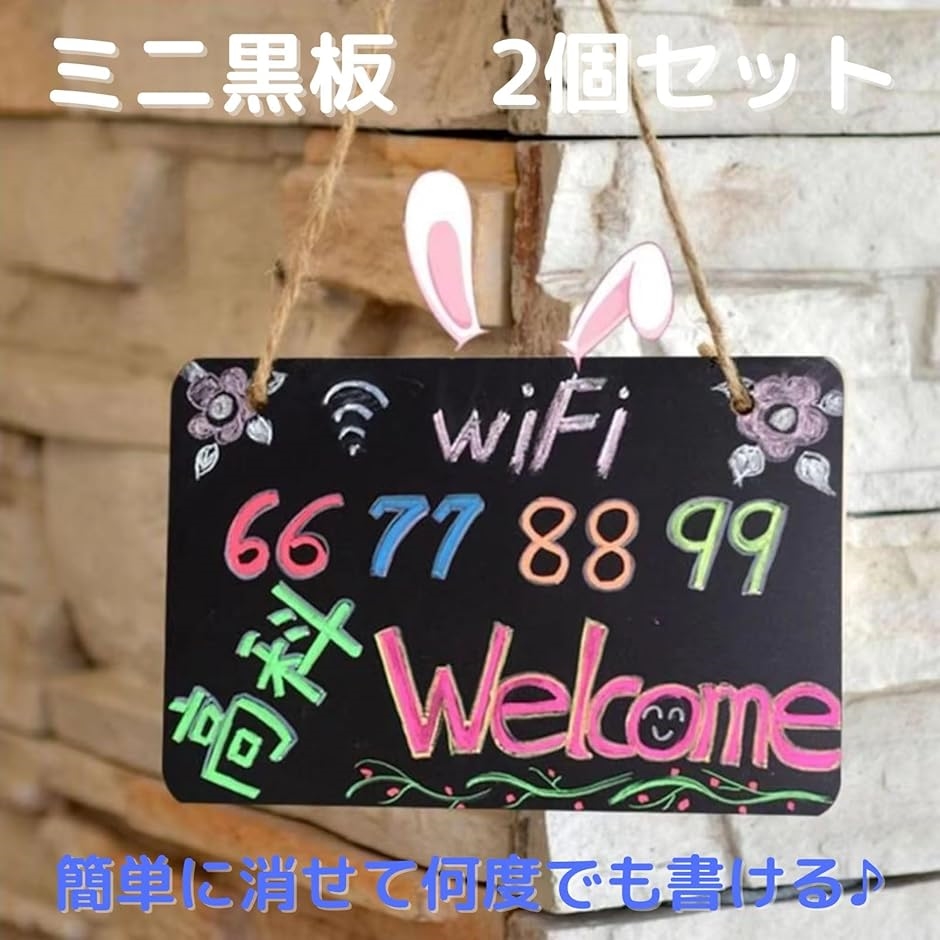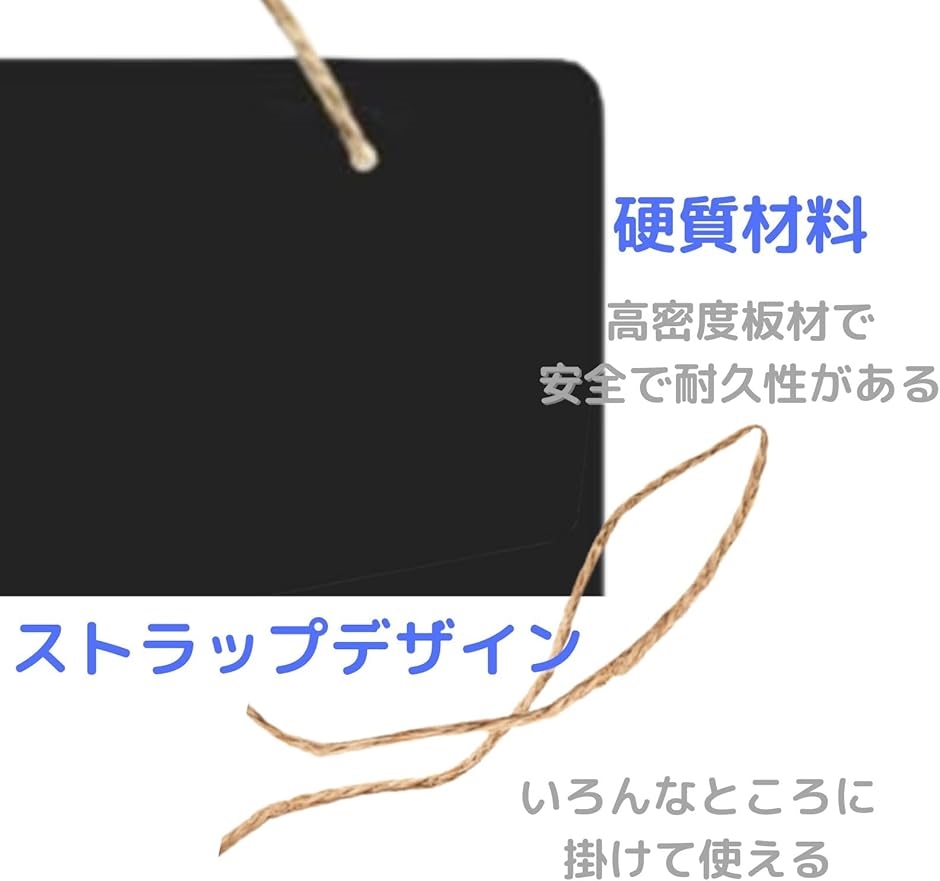 | 商品名 | 黒板 ブラックボード 2枚セット 両面使用可 23cmx17cm 麻ひも 付属で 吊り下げ可能 看板 掲示板 メニューボード 等に |