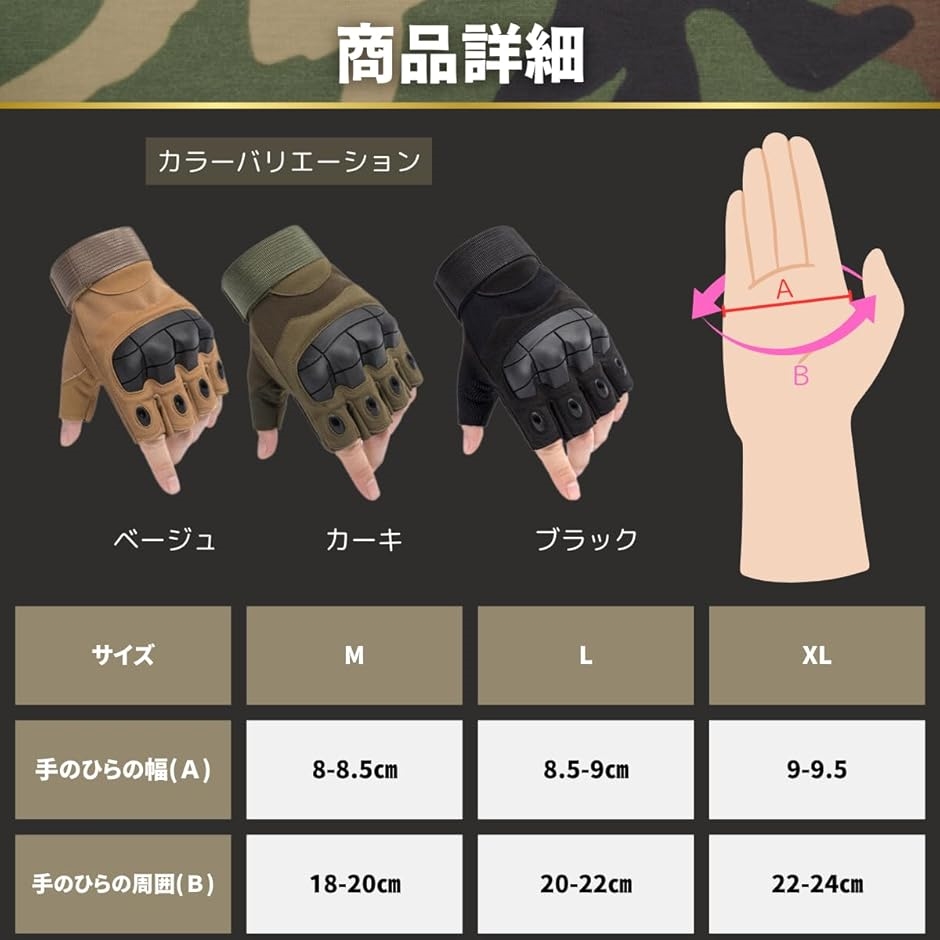 | 商品名 | タクティカルグローブ 指ぬきグローブ サバゲー ハーフフィンガー 手袋 ミリタリー バイク キャンプ フィンガーレス 自転車 アウトドア 登山 |