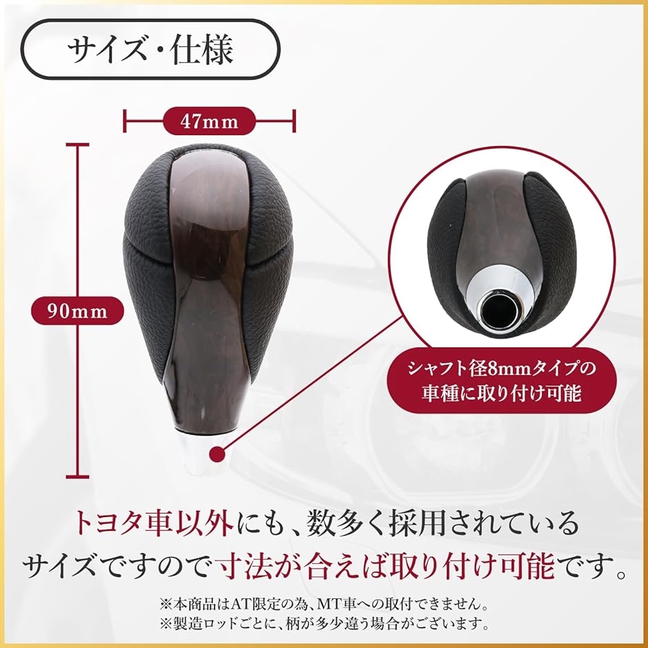| 商品名 | トヨタ 汎用 シフトノブ 8mm AT 専用 フェイク レザー エスティマ クラウン ノア プラド ランドクルーザー ブラウン ウッド 茶 |