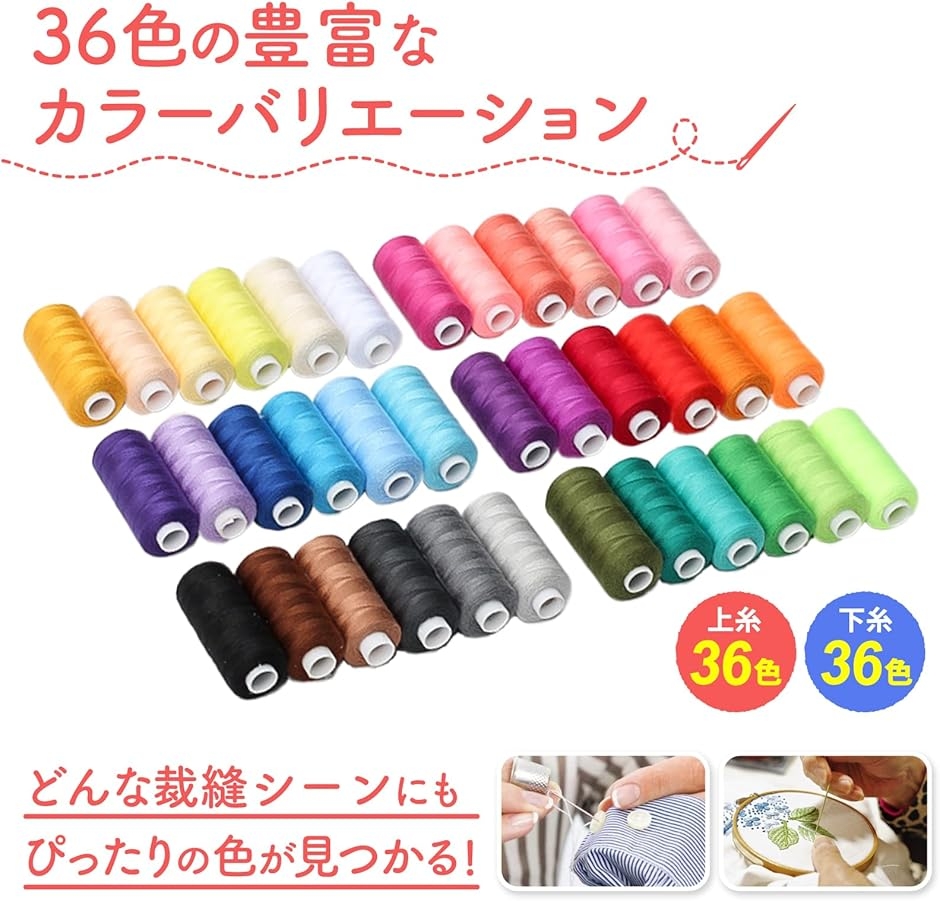 | 商品名 | ミシン糸 ボビンセット 36色 365m 60番 ポリエステル 収納ケース付き ボビン+針 |