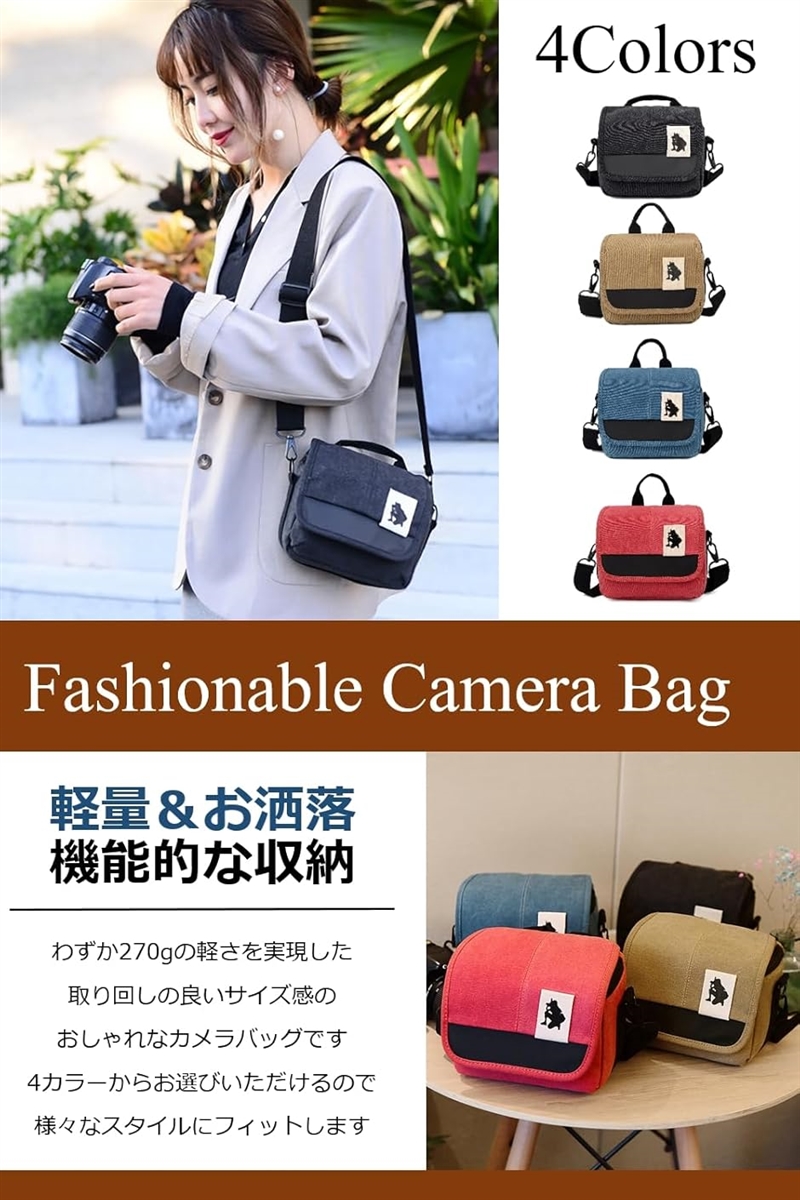 一眼レフやミラーレスカメラを収納できる、小型軽量でおしゃれなショルダーカメラバッグです。