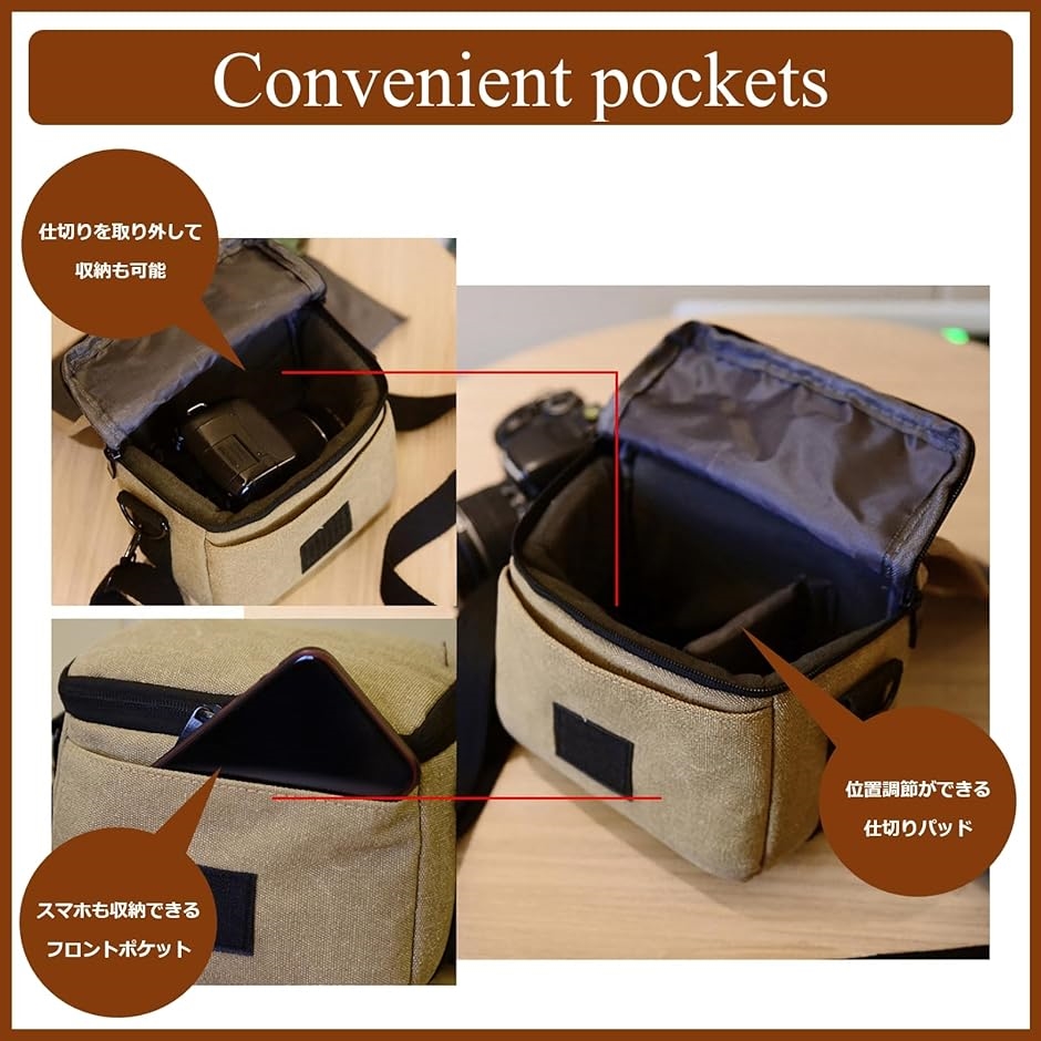 | 商品名 | カメラバッグ 小型 軽量 ショルダー カメラケース コンパクト 一眼レフ ミラーレス おしゃれ カーキ |