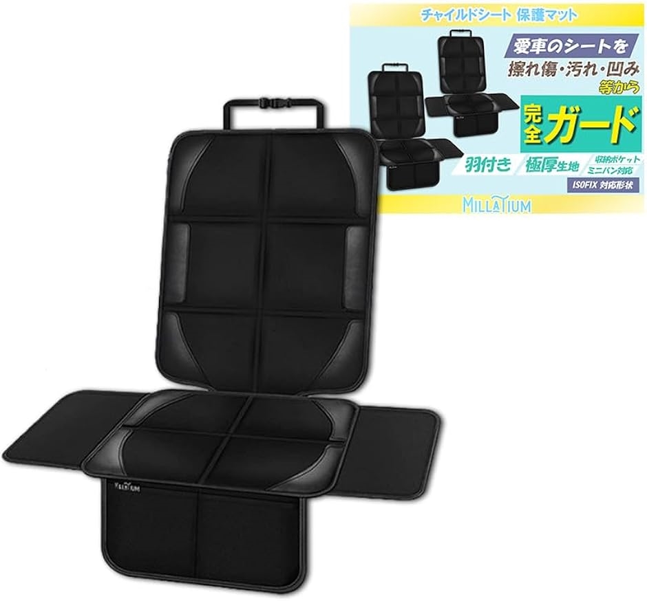 | 商品名 | チャイルドシート 保護マット チャイルドシートカバー  羽付き・極厚マット isofix対応 保育士推薦 黒 |