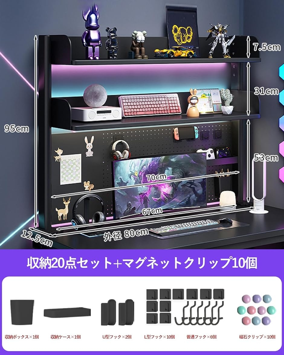 「大容量の収納力」この机上ラックは大容量モデルで、驚くほどの収納力を発揮します。