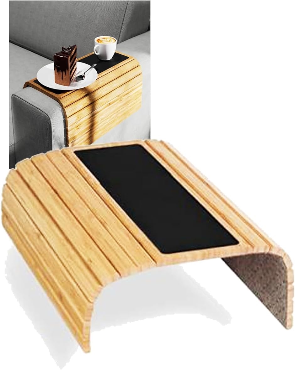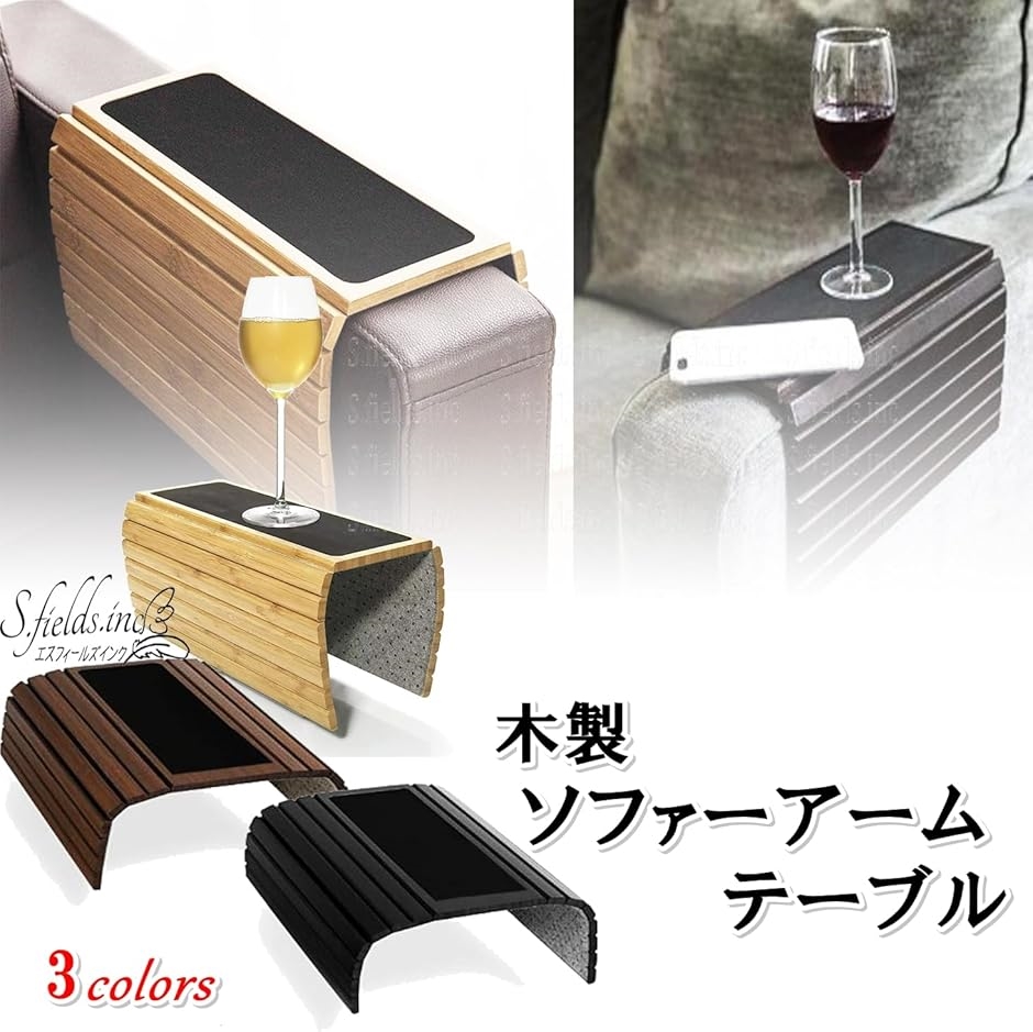 ソファーのひじ掛けがサイドテーブルになる木製ソファーアームテーブルです。