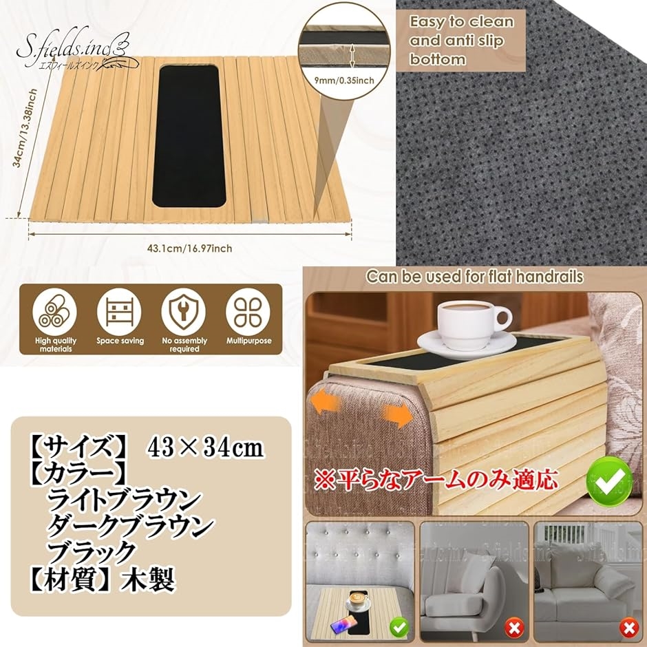| 商品名 | ソファーアームテーブル 木製 アームレストトレイ スクエア サイドテーブル カップホルダー ライトブラウン |