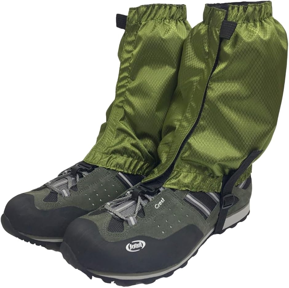 「アウトドアの強い味方」どんな天候下でも活躍するこのゲイターは、撥水・防水素材を使用しており、雨や雪はもちろん、泥や小石からも足をしっかり保護します。