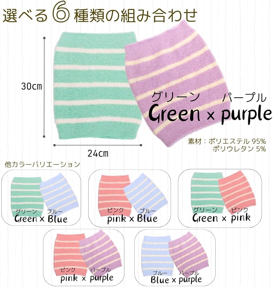 「商品詳細」セット内容:2枚セット サイズ:約30x24cm 素材:ポリエステル 95% ポリウレタン 5% カラー:グリーン・パープル / グリーン・ブルー / ピンク・ブルー / ピンク・パープル /グリーン・ピンク/ブルー・パープル の6種類の組み合わせからお選びください。