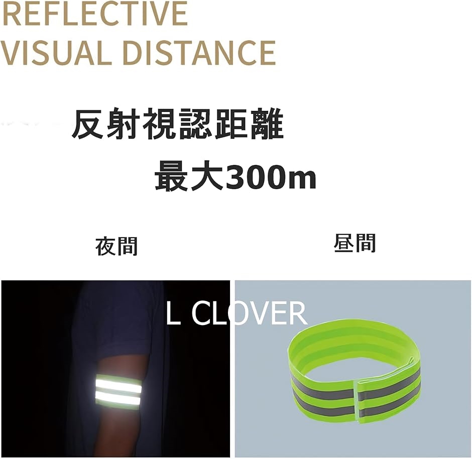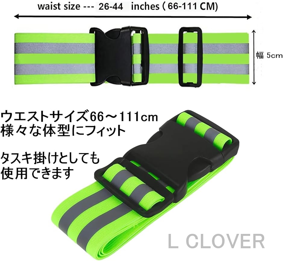 | 商品名 | L CLOVER 反射タスキ 反射バンド 夜間 ランニング ジョギング 自転車 腰ベルト アーム アンクル バンド 蛍光 6点 グリーン |