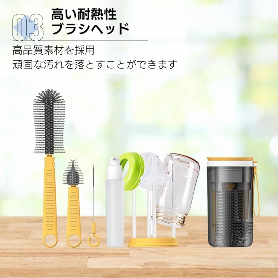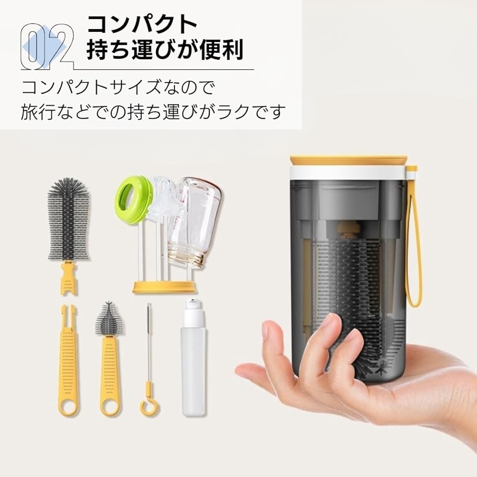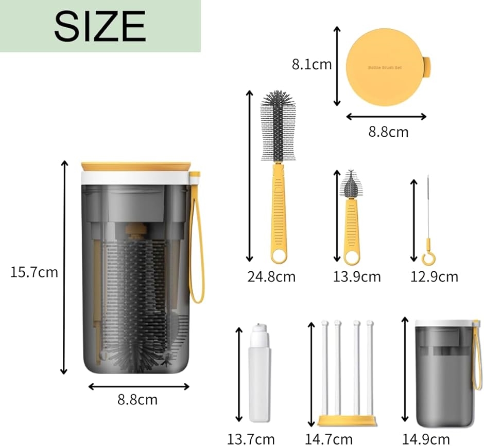 「商品内容」哺乳瓶ブラシセット サイズ:15.7x8.8(cm) 材質:ABS素材 カラー:イエロー