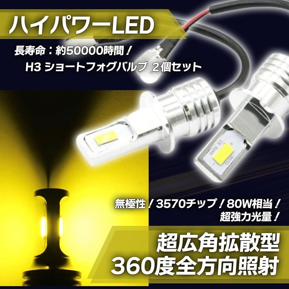 | 商品名 | LED H3 フォグランプ 車検対応 12V 24V 爆光 ledバルブ 小型 高輝度 無極性 バルブ 左右 セット |